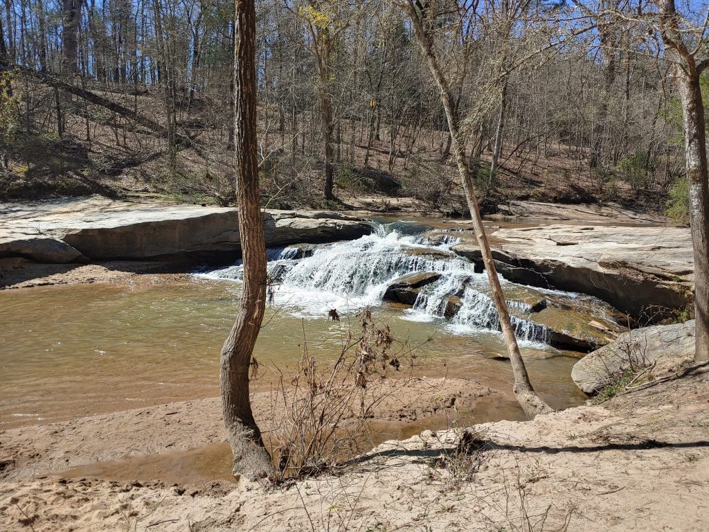 Another unique feature of the park is Horseshoe Falls, a small waterfall located on Cedar Shoals Creek. The waterfall is handicap accessible.