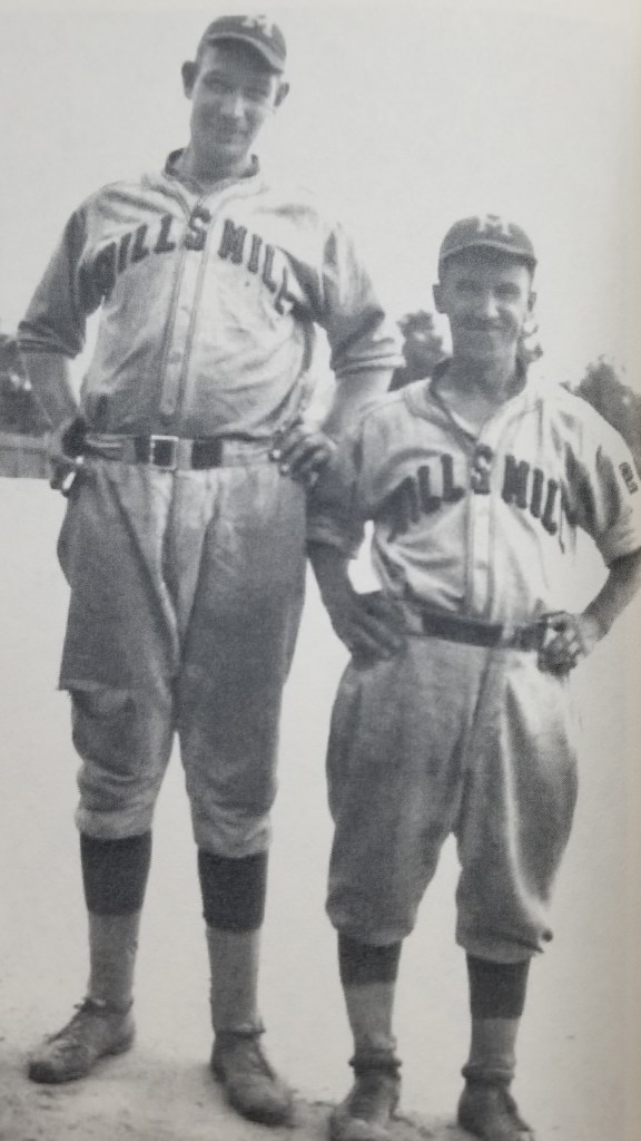 “Dad was playing for either Watts Mill or Laurens and one day they had a game at Abney Mill in Woodruff, and the place was packed. Uncle June was playing for Abney Mill and was coaching third base and playing catcher. This game was so intense, people were sitting outside watching from trees on a beautiful Saturday afternoon.”