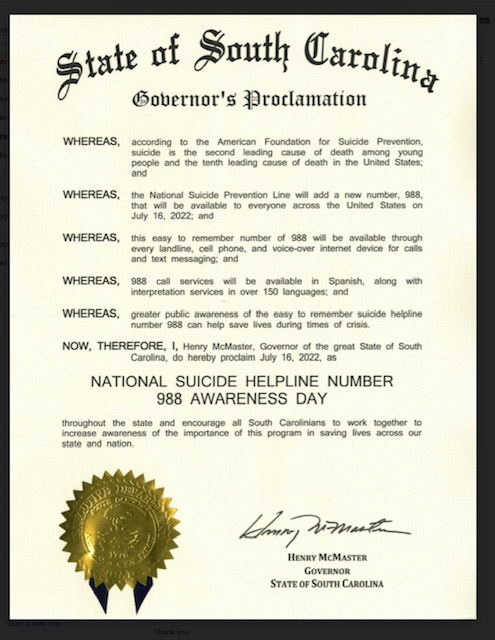 Woodruff resident Charlize Simmons has requested and had approved a Proclamation for Awareness of the new 988 lifeline phone number by South Carolina Governor McMaster. The Proclamation is for the day the new number went into effect, Saturday, July 16, 2022. Miss Simmons, who lost her God-brother, Zachery Thomas, a Woodruff graduate, to suicide in 2010, is very passionate about mental health issues. Her social Initiative as Miss Woodruff 2020/2021 and Miss Richland County 2022 with the Miss South Carolina Scholarship Organization has been focused on ADHD and other mental health issues. She and her Palmetto Princess, Maddisyn Rodgers, a rising Woodruff 6th grader, have received awards for community service awards for the numerous activities they have been involved in, including two President’s Volunteer Service Awards.