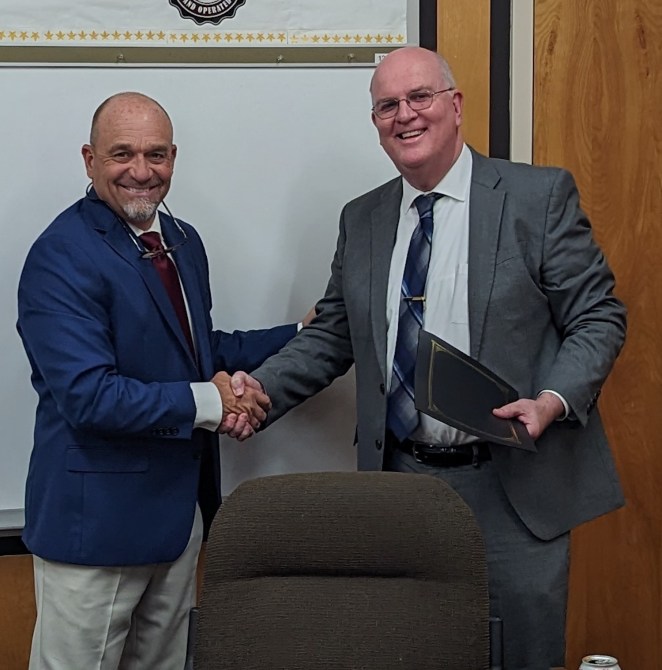 The Board also took a moment to recognize two of its members. Dr. Liston presented certificates and letters of recognition from the South Carolina School Boards Association to Chair Tony Davis for 10 years of service on the board and Gordon Godfrey for 20 years of service.
