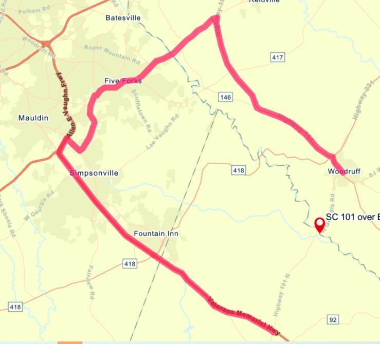 - October 26, 2023: Another public information meeting by the SCDOT is scheduled, addressing proposed improvements to SC 101 over Enoree River and US 221 over Enoree River in Laurens County. The meeting will occur from 5 to 7 p.m. at Woodruff City Hall, 231 E Hayne Street, Woodruff, SC 29388.