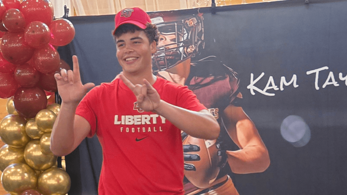 Taylor is entering his third season as a starter for the Wolverines, and burst onto the scene last year as a junior, catching 24 passes for 374 yards and eight touchdowns, becoming one of the most sought-after players at his position in the state. Over the past 12 months, Kam has racked up 16 Division 1 offers, but said of all his suitors, Liberty was the right fit and that the Flames made it clear he was a priority target for their program.