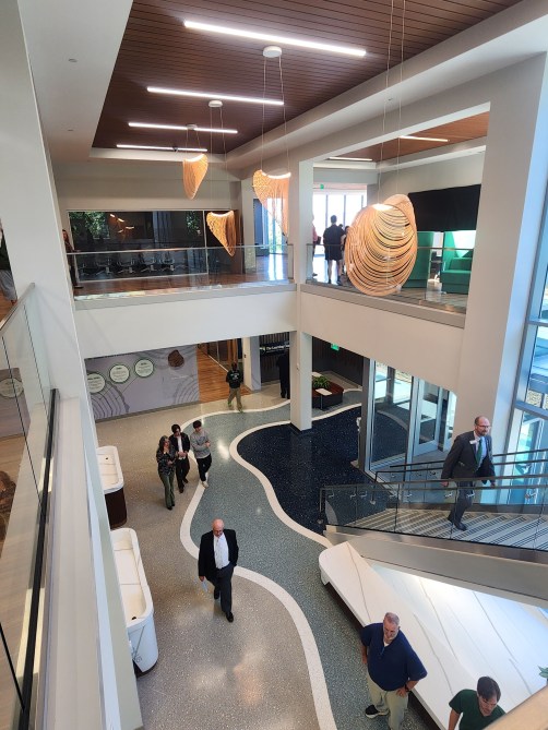 Following the dedication ceremony, guests toured the facility and attended a ribbon cutting and reception featuring coffee and a “donut bar” built from reclaimed campus wood.