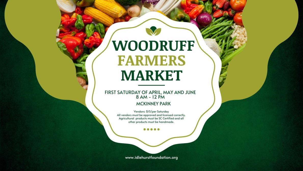 Join us at the heart of Woodruff for a celebration of local produce, unique artisan crafts, and a community spirit that brings the farm right to your home! Operated under the guidance of the City of Woodruff with Idlehurst Foundation, we are thrilled to invite you to participate in our vibrant market days, filled with the best local vendors and artisans from the Upstate.